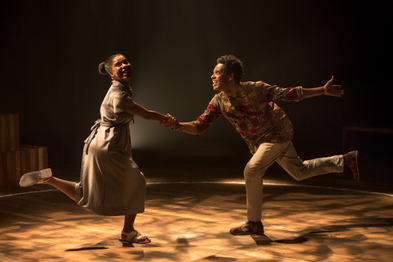 Os atores e produtores Taís Araújo e Lázaro Ramos em cena do espetáculo O Topo da Montanha com direção de Fernando Philbert. A produção estreou em 2016 e alcançou um sucesso de público e críticas por onde passou.